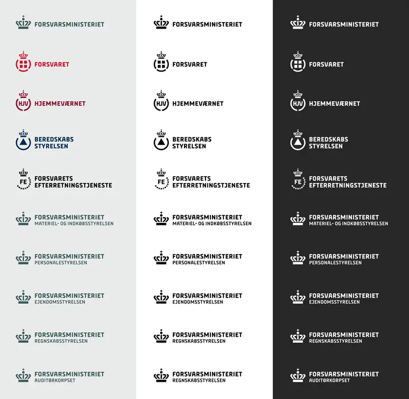 全新的形象由丹麦kontrapunkt设计公司设计完成。这家公司是丹麦政府机构的御用设计公司,在过去的二十多年里,为丹麦政府设计了大量的视觉形象系统。包括国防部之前的旧版LOGO,均由这家公司设计。